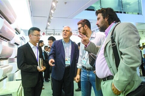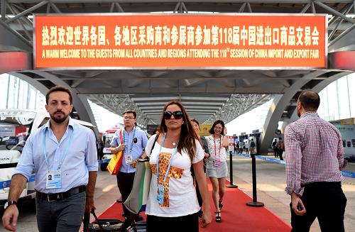 客商在廣交會(huì)展館參觀洽談